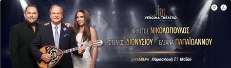 מופעי השבוע השוטף [315946 מבקרים באתר] שלום לכולם, להלן עדכונים על מופעי השבוע הקרוב נכון ל-25.4.2026: באתונה קטרינה ליוליו וכריסטוס סאנדיקאי מופיעים בימי שישי ושבת על בימת מועדון "רומאו" באתונה. כתובת המועדון: Ellinikou 1, Elliniko. פרטים בטלפון: 30-210-8945345+. פטרוס יאקובידיס וריה הלינידו מופיעים בימי שישי ושבת על בימת מועדון "פנטאסיה" באתונה. כתובת המועדון: Leoforos Poseidonos 5, Elliniko. פרטים בטלפון: 30-210-8940203+. מופע מיוחד של שירים "צבעוניים", שצבעם לא דועך עם הזמן, ייערך ביום שישי, 27 באפריל בשעה 20:30, על בימת ה-Christmas theater, המצוי בשכונת גאלאצי באתונה. ישתתפו: מילטוס פסחאלידיס, פיליפוס פליאציקאס, סאבינה יאנאטו, נאטאסה בופיליו, אלי פספאלה, לודוביקוס טון אנויאון וזמרים נוספים. כרטיסים בקישור. יאניס דיוניסיו יופיע יחד עם הפסנתרן, דימיטריס סינטוס, ביום שלישי, 28 באפריל בשעה 21:00, בבּוּאַת "אפאנמיה" שבמעלה מדרגות רחוב מניסיקלאוס באנאפיוטיקה שבאתונה. פרטים בטלפון: 30-210-3248580+. מחוץ לאתונה כריסטוס ניקולופולוס, סטליוס דיוניסיו ואלאנה פאפאיואנו יופיעו בימי שישי ושבת, החל מה-1 במאי, על בימת ת'אטרו "ורגינה" שבמתחם הריג'נסי קאזינו בסלוניקי. כרטיסים בקישור.